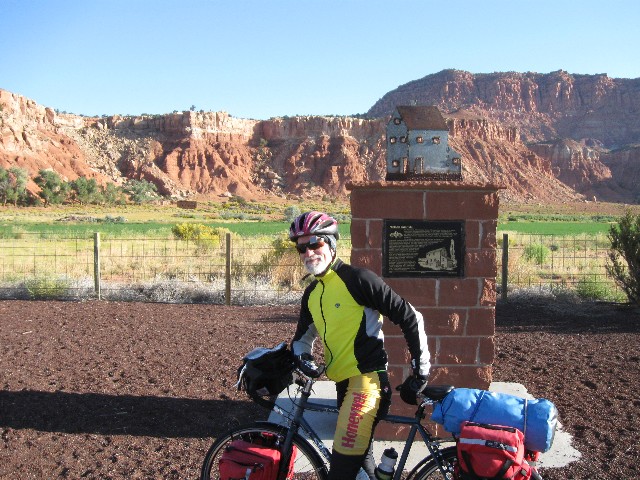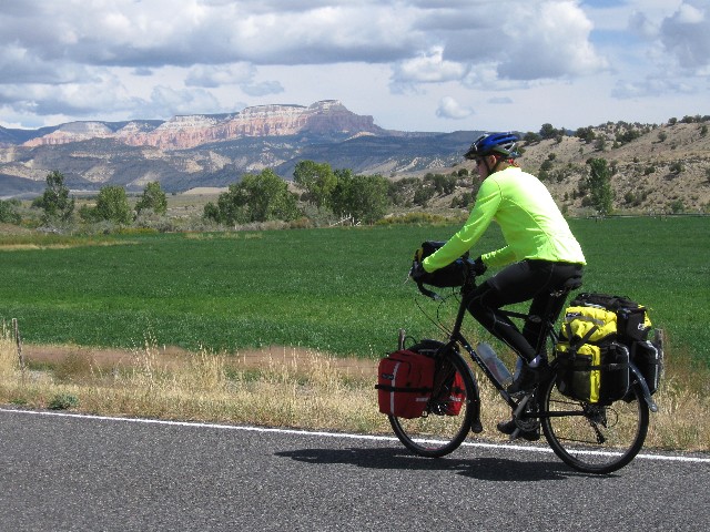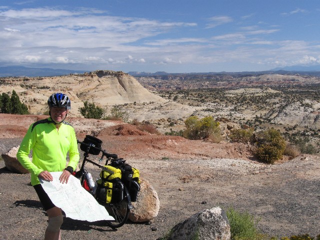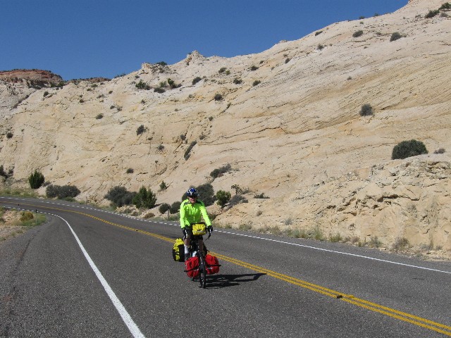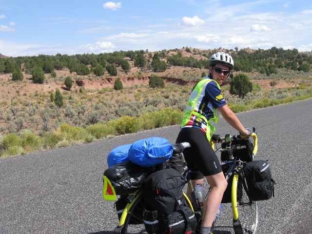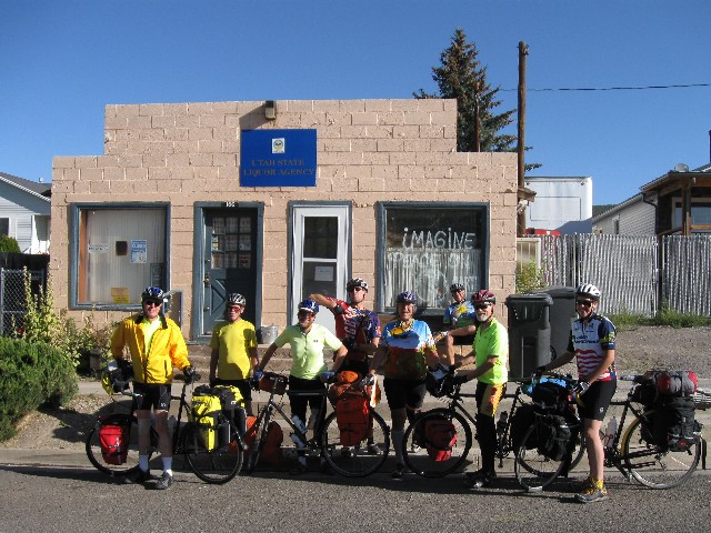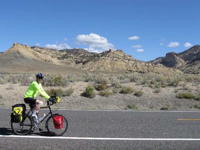 This is a report of 268 miles of self-contained bicycling in Central Utah. It was initially scouted by Cheryl S. and Randy B., and organized this year by Dave R. Other riders include Zig S., Rob P., Tiffany M., Don V. (Vince), and me (eight total, all self-contained). Utah is known for tremendously terrific terrain and unabashed backward outlook. Acknowledge the land, then overpopulate it as quickly as possible. We eight took the more ethical tour, self-contained (and without any support vehicles).