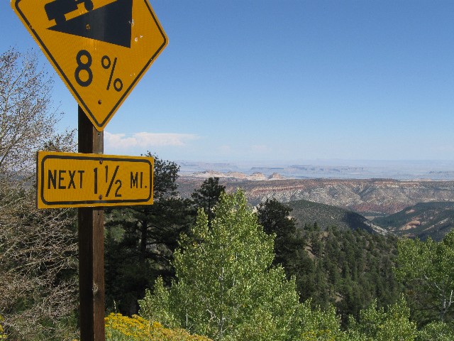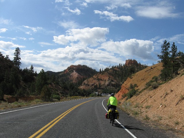 Ottter Creek SP to Bryce Canyon entrance; 44.5 miles; up 2571'; down 1580', camp at 7500'. (132.5 total miles.)
