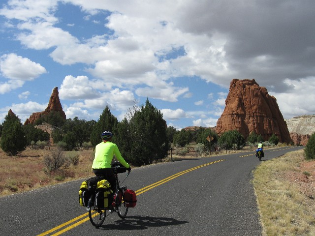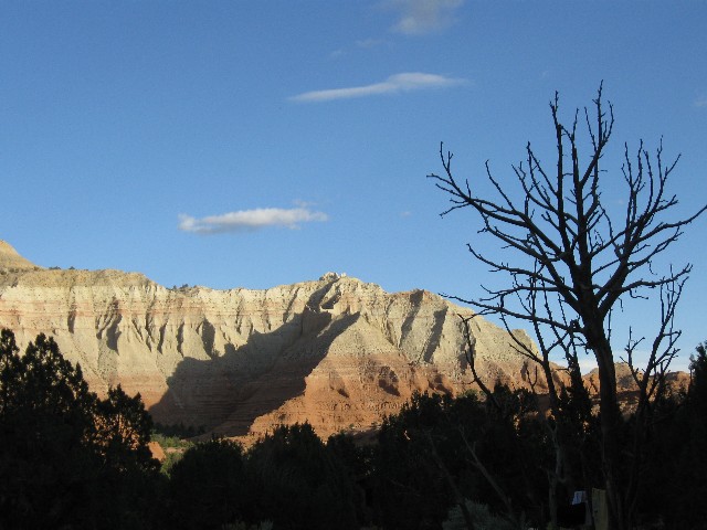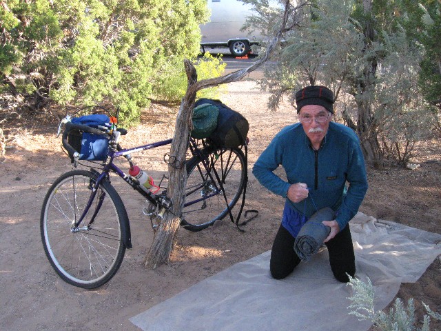 Today started with the scenic plunge off the plateau, lilting and undulating through eons of rock strata. Dave and I stop in Tropic and enjoy an early lunch. This, after dawdling around camp drying tent flies and warming like lizards in the sun. It rained just at bed time last night.