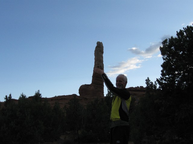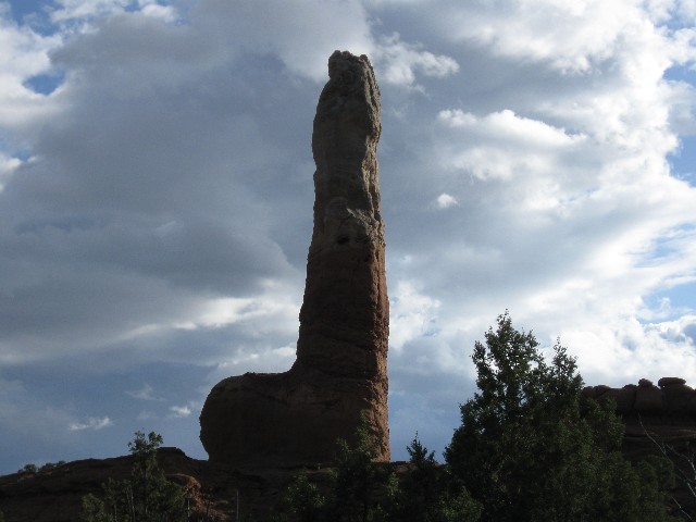 The gnarled and wrinkled surface of Brigham's Organ, The Cock Rock, The Porphoritic Phallus, The Dick Stone, the renowned sandstone pipe glows briefly as the sun dips below the very near horizon. Fluted shadows march across the Salmon-pink Entrada SS (Sand Stone) in this state park named after the old film master, Kodachrome State Park. It's a too-soon ending to a deluxe touring day.