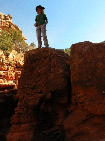 sweep of the S, where the wash turns N. Walk down the switchbacks from the Inn and out