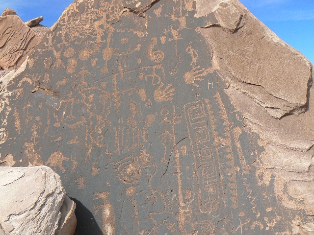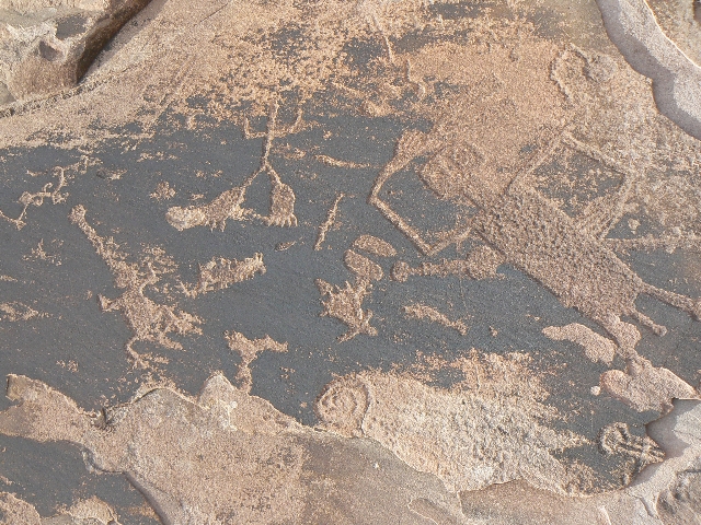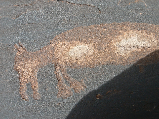 The wind was approaching cold, so on our return we paused for lunch in the lee of petroglyph