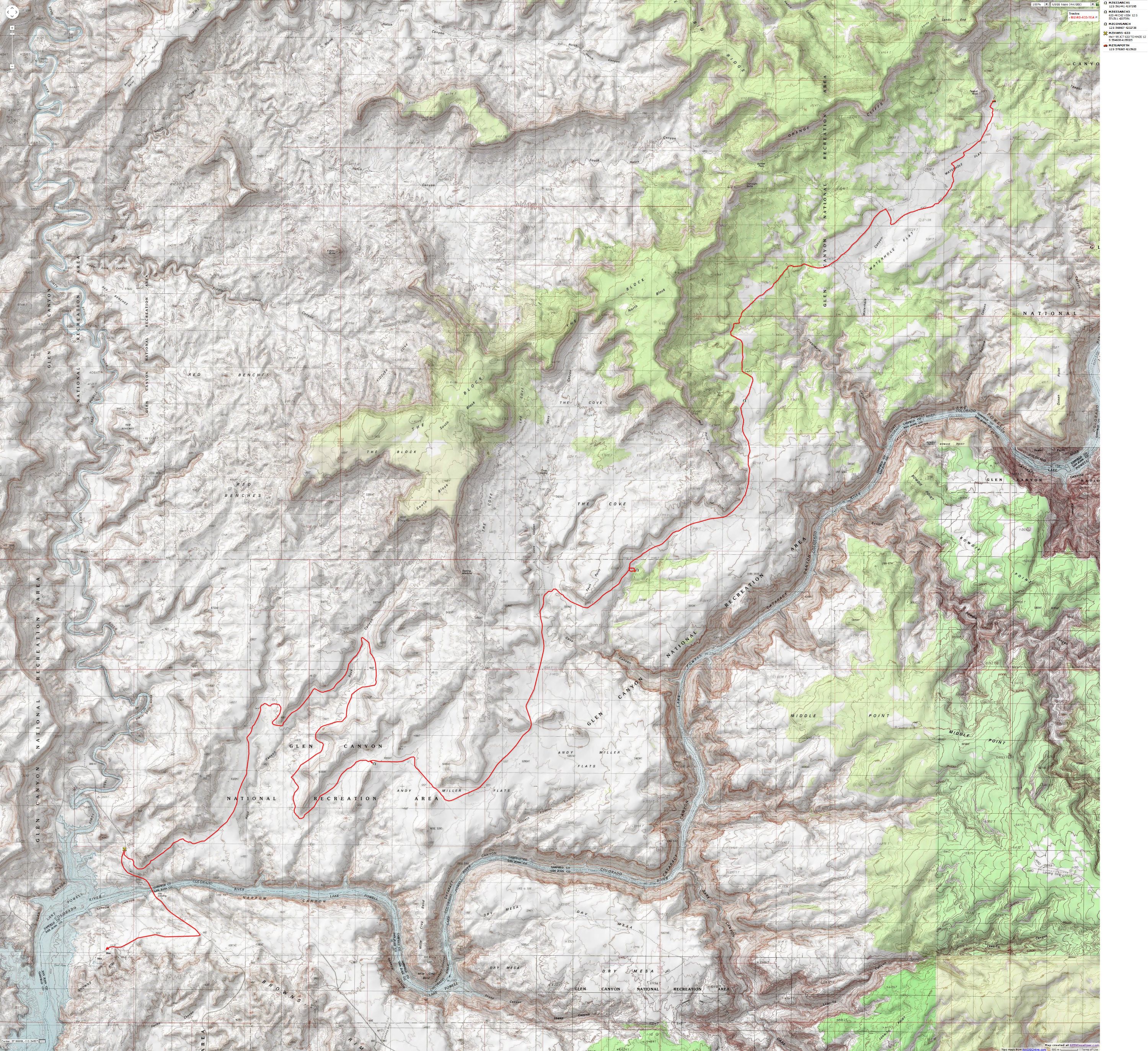 Map - UT: Canyonlands - Maze; 2009; Hite to Teapot - driving