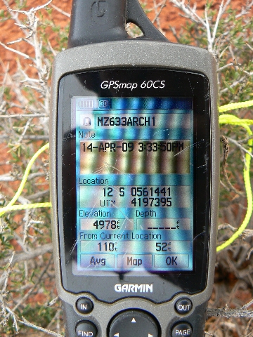 off on the slickrock on your right, and look just below your level and about 600 feet to