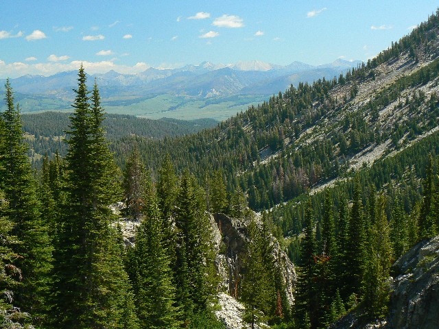 After rejoining the Twin Lakes/Toxaway loop, we continue down the Yellow Belly Trail toward Farley Lake. We had initially planned on camping at Farley, yet the early hour and the drone of mosquito squadron 409 convinced Kathleen that the TH lope looked wondrous.