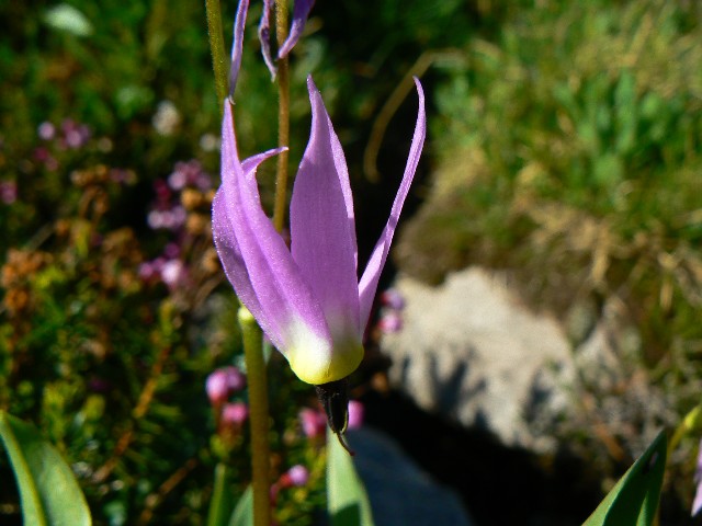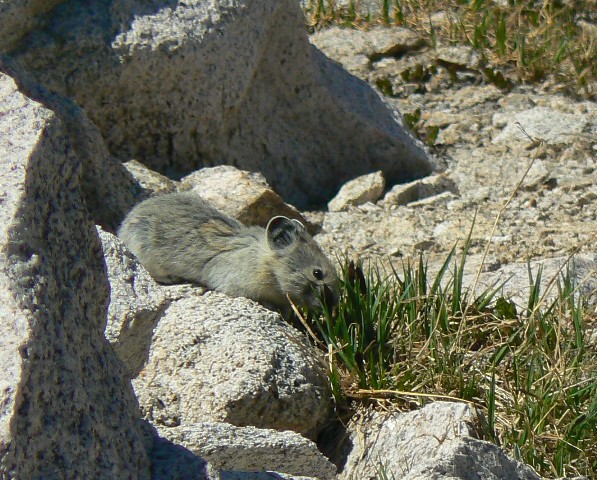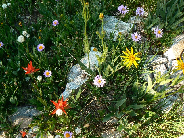 The day started with a return to Sand Mountain Pass. Continuing up from this pass, we encountered Old Man of the Mountain sunflowers before dropping into the granulated granite holding the Imogene/Edith trail junction. Wondrous place - it looks prime for Mountain Goats, albeit we don't see any today. Continuing down the trail toward Toxaway Lake, we encounter the jade green jewel of Edith. There are signs of it being within a day's hiking of the trailhead - wear and tear, and restoration projects being implemented. This trail seems more 'primitive' than that from the Day 2 up to Sand Mountain Pass, no gently curving switchbacks. And, there is a demonstrated (argh, ankle twist) need for the revived CCC (Civilian Conservation Corp) to repair and prevent erosion damage. Write your legislator today - bring back the CCC.