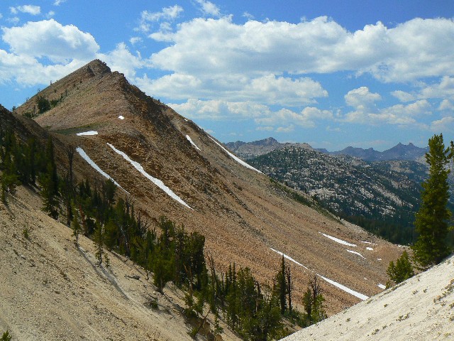 An inspection of the map reveals that we have only to hike over the bump marking the country line and to drift toward the Tin Cup TH to the sunshower lounging in the car. It's not much of a climb, yet seems so after the getting-longer day.