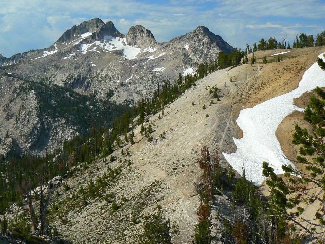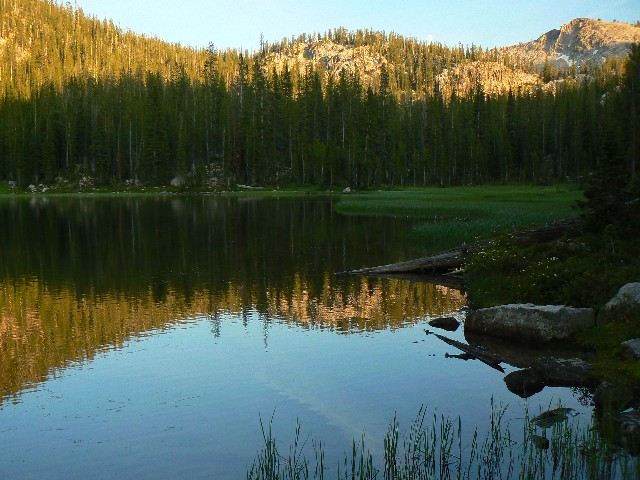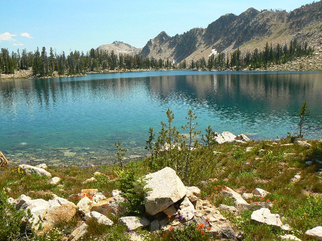 The lilt along Benedict Creek has been fabulous, with its flower-studded views of granite crags and its deep forest rambles - headed down to a ford of Benedict Creek and then the South Fork Payette, where we begin the elevator back to Edna, passing the Ten Lakes/Ardeth Lake junction and that to Hidden Lake and the Cramer gems. A few short weeks ago, a fellow traveler informs us, it was not possible to ford the S. Fork Payette, and he had to circle back the way he came. No big issues today. Yet, I am captivated by the clarity and abundance of this mountain water. The previous trips I have done this year were all in terrain generally devoid of water, even the sky island of the Toiyabe Crest. Ahh, water, clear and free, flow for me.
